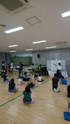 くすのき学級が、小アリーナに全員集まって音楽の授業です。