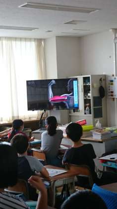 5年生は、理科で「人の体のつくりと運動」の学習をしています。今日は、映像を見て機械で再現された仕組みと比べながら、人間の体が動く仕組みについて学習をしていました。