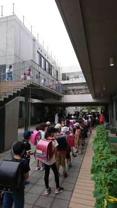 毎日の検温、健康観察ありがとうございます。最後まで、元気に登校できるよう、引き続きよろしくお願いします。また、朝の混雑や熱中症を避けるため、登校時間・入室時刻に合わせての登校にご協力ください。