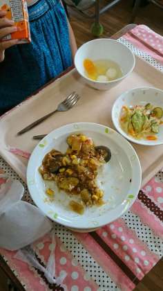 今日は給食がありました。1学期最後の給食は、キングオブ給食、カレーライスです!おいしそうに、たくさん食べていました。前向きで食べる給食にも慣れました。