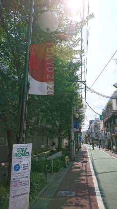 区に依頼をして、商店街に面した桜の木を剪定してもらいました。街路灯に掛かっていた枝がなくなり、フラッグがよく見えるようになりました。子供たちの作品が飾られるのが楽しみです!
