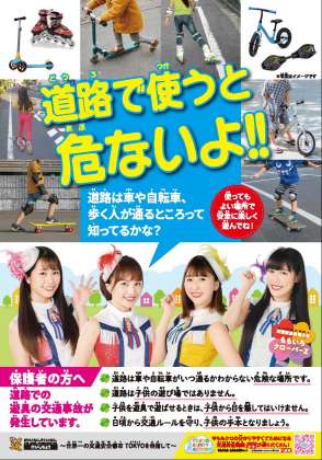 道路上での遊具使用に起因する死亡事故や重傷事故が多発しているそうです。道路交通法では、「交通の頻繁な道路において、球戯をし、ローラー・スケートをし、又はこれらに類する行為をすること」が禁止行為として定められています。何より、大切な命を守るために、しっかりルールを守っていけるようにご家庭でも話題にしてみてください。
