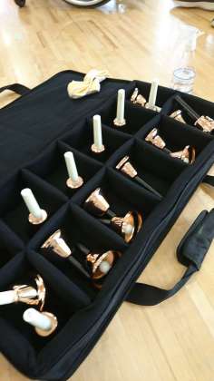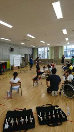 音階を割り振り、ハンドベルが配られます。これまでにも経験した子は、やり方を覚えていて、早速鳴らしてみると、よく響くいい音が出ていました。