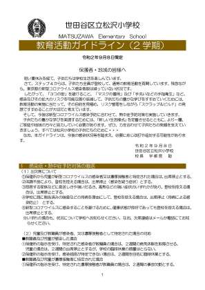 保護者・地域の皆様へ「教育活動ガイドライン(2学期)」の策定