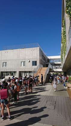 となります。8時10分までは、間隔を開けて待ち、数回に分けて順次入室していきます。熱中症予防・感染予防のため、早く登校しすぎず、登校時間に合わせたの登校をお願いします。ずいぶん分散はしてきたものの、まだ8時10分の入室開始時が混雑しています。8時10分を過ぎてから、8時15分から20分くらいに学校に到着するように来るとスムーズに入室できると思います。ご協力よろしくお願いいたします。