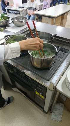 いくつかのタイミングで皿に盛り、各班で茹で具合などを確かめます。試食はなしです。