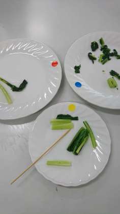 今日は、小松菜を茹でる調理についての学習でしたが、実習ではなく、前で教師が調理をする様子を見ながらの授業でした。