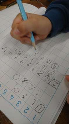 ノートにどう書くのか、説明を聞いて、早速問題に挑戦です。どんどん問題を解いていました。