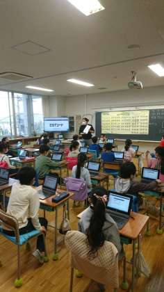 3年生が、タブレットPCを使っていました。
