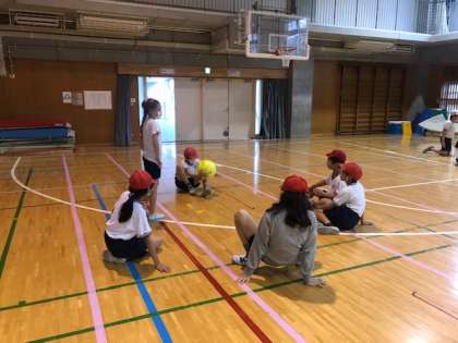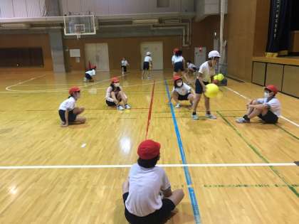 体育でキャッチバレーボールをしています。