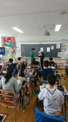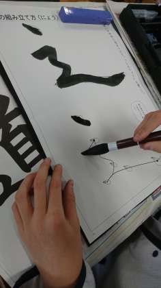 前回も「道」を書いている5年生を紹介しましたが、今日は別の学級で取り組んでいる様子です。