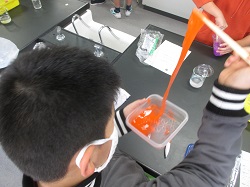 科学クラブでは、スライムを作りました!自分の好きな色の絵の具を用意し、割りばしでグルグルかき混ぜて楽しく作りました。先週は工作用紙でブーメランを作り、重りや羽の向きなど、科学クラブらしく理科の視点で考えながらも楽しく活動しています。