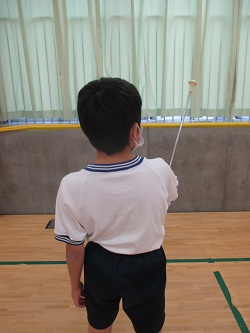 最後はバトントワラークラブ!小アリーナに集まって、さっそく練習です。バトンを振ったり回したりと一生懸命に頑張っています。