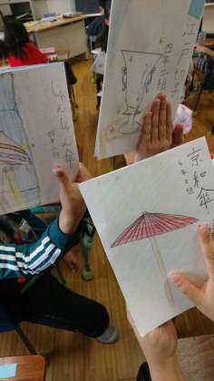 今日は、ちょうど完成したところのようで、教室に入ると、「見てください!」「HPに載せてください!」と、たくさん作品を見せてくれました。見せてくれた全部を載せられなくてごめんなさい。一部を紹介します。それにしても、どれもデザインが素晴らしく感心しました。何というか、絵がうまいだけではなく、バランスの良さというんでしょうか。こういう力、うらやましいです・・・。