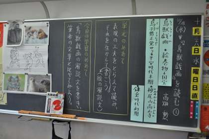 国語「『鳥獣戯画』を読もう」の学習に入りました。この説明文は、今年の6年生の研究授業で取り扱うものです。11月12日(木)に6年2組で行います。