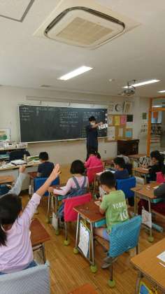 2年生が、授業の最後に「九九ビンゴ」をしていました。
