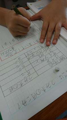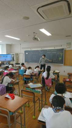 3年生は、「重さ」の学習に入り、「g(グラム)」の単位を学習して、書く練習をしていました。