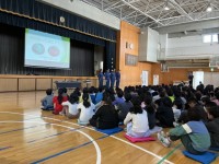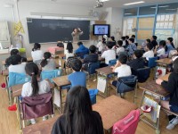 2年生の音楽です。歌に合わせて、打楽器でリズムを刻んでいます。