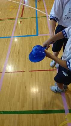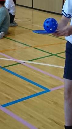 今日は、両手で持ったり、持つ場所を変えたりして、自分にとってバランスを取りやすいやり方を見付けていました。慣れてくると、走って運べる子もいました。