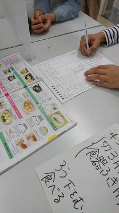 6年生は、家庭科で調理実習に向けて準備をしています。グループごとにメニューを決めて、手順や作業の内容を考えています。