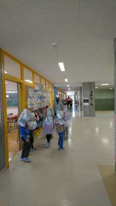 今日は、緊急地震速報が入った想定で、廊下までの避難(実際の動きも考えて、2年生はビオトープ側への避難、6年生はベランダ側への避難)を行いました。全員の避難確認までの時間は4分と少し、前回よりも1分くらい早くなっています。真剣に取り組むことができていました。