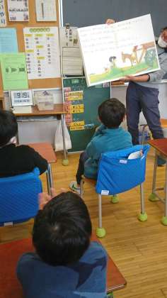 朝の会では、読み聞かせをしていました。大きな本を使っています。