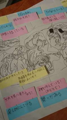 この単元自体が「鳥獣戯画」の解説文なのですが、そこで学んだ表現や構成の工夫を生かし、別の場面から自分なりの見方で読み取ったことを整理して、解説文を書いていきます。