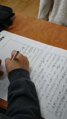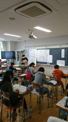 今日は、最終的に文章にまとめる段階に入っていました。難しい学習ですが、各自よく考えながら、これまで一歩ずつ進めてきた学習のまとめとして解説文を書いていました。いくつか読ませてもらいましたが、なかなか読ませる文章に仕上がっています。作品の交流も始まっています。友達の作品から、さらに刺激を受けていくことでしょう。