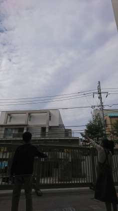 その後、今、月が見えている、ということで、正門から西の空を見に行きました。初め、ちらっと雲の隙間から月が見えたようですが、その後は、雲に隠れてしまって見えなかったそうです。残念!