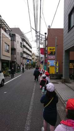 短輪を持って安全に移動できるように、結んだら輪に手を通して、持ち手を握ります。まずは結ぶ練習をしていました。1年生は、まだひもや縄を結ぶのができる子もいれば、できない子もいます。担任がフォローしながら安全にできるように見ていきます。