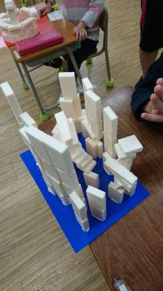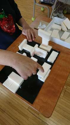 きはだ学級の図工では、「こんな家があったらいいな」と、想像を膨らませて、住んでみたい家をブロック(スチロール)で作っていました。