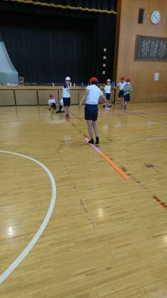 くすのき学級の体育です。先日もお伝えしたボール運びをしていました。