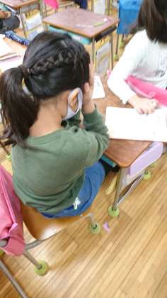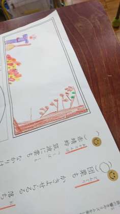 今日は、秋の俳句を読んで、想像した情景を描き、暗唱しようと繰り返し声に出して朗唱しているところでした。