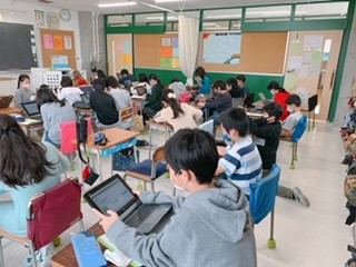 調べ学習中に、「明日の夜、サッカー日本代表の対戦相手、パナマなんだよ!」という声が。パナマについて関心をもち、調べることで、日常生活と授業の学びがつながっています。