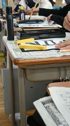 4年生は、心静かに書写の毛筆に取り組んでいました。