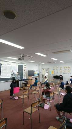 残り半分の子たちは、音楽の授業を受けていました。歌を歌っています(写真は間に合わず・・・)。こちらの人数も半分になっているので、歌を歌うの十分な間隔が空いていて、ちょうど良いです。とはいえ、もちろんマスクはしたまま、適度な声で歌っています。