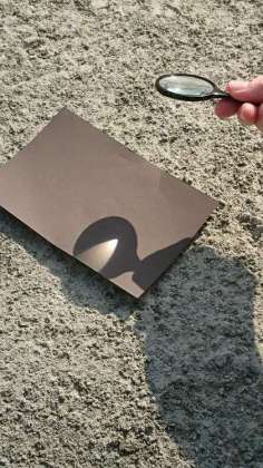 今日は、虫眼鏡を使って、太陽の光を集める実験を行っていました。教室で、実験の準備をして校庭へ向かいます。黒い紙を使って、光をできるだけ小さな一点に集めます。