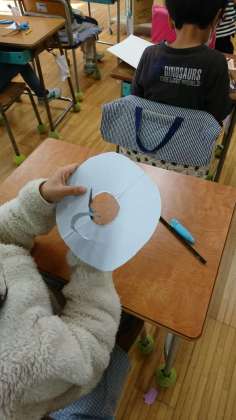 2年生は、図工「けん玉大さくせん」で、ドーナツがたのけん玉を作っていました。