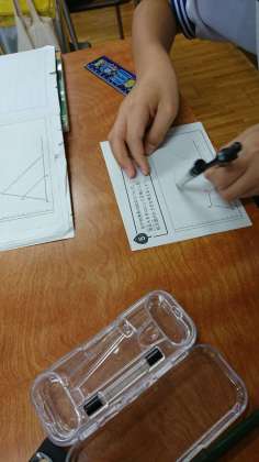 さすが6年生、コンパスの使い方が巧みです。無駄な力が入っていない。動きが軽いです。