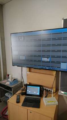 一覧の画面で、子供たちの作業の様子が分かります。教員は、子供たちの間を回ったり、モニターで確認しながら、補助をしていました。