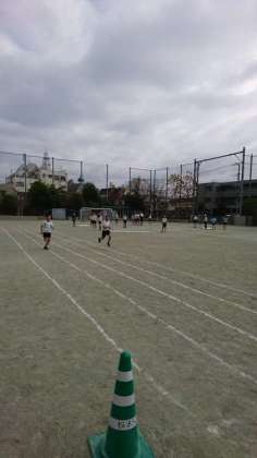 短距離走は、コーナーもある少し長い距離で記録を計っていました。体も大きい6年生の走りは力強いです。