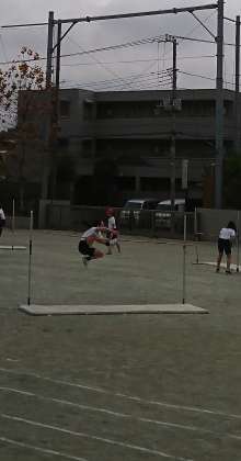 6年生の校庭体育では、短距離走と高跳びに取り組んでいました。