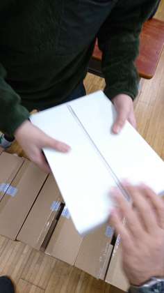 昨日、ホームページ・緊急連絡メールでお伝えした通り、本日6年生に、タブレット型端末等の配布を行いました。