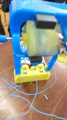 今日は、自分でコイルを巻いて作った電磁石を使って、お手製のモーターを作っていました。