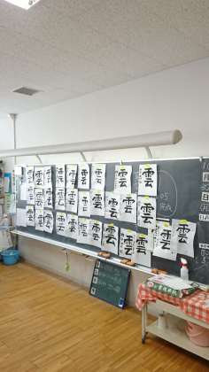 4年生は、書写で「雲」という字を書いていました。