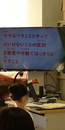 テレビ画面にも大きく写し出されていますが、「今やるべきことと、やってはいけないことの区別を態度や行動ではっきりと示すこと」はとても大切です。