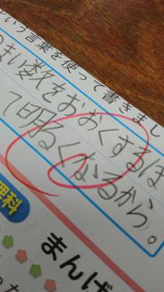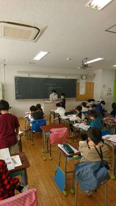 テストには、文章で答える部分もあります。質問に対して正しく答えるのがポイントです。内容は合っているんだけれど、質問に正しく答えられていないと正解にはなりません。今日は、適切に答えた二重丸が付いた子の解答を発表してもらい、皆も参考にさせてもらっていました。そういう風に答えればいいんだ、というのがよく伝わったと思います。
