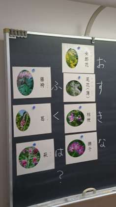 今日は、短歌に触れていました。山上憶良の歌や防人の歌、古い短歌です。山上憶良の歌に、「七種の花(ななくさのはな)」という言葉が出てきて、秋の七草についても触れていました。もう1つ憶良が七草に触れた歌についても紹介されています。この2首が「秋の七草」の由来のようです。