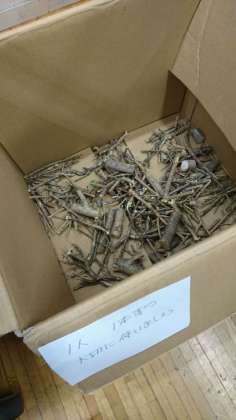 材料には、持ってきたビーズやモールなども使われていますが、学校で用意した木などもあります。こういった作品に自然素材が入るとぐっと魅力が増す気がします。