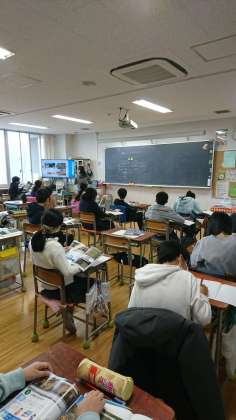 今日は、校庭のしたのボーリング資料などを基に、下の様子がどうなっているかを考えて、「地層」について学んでいました。